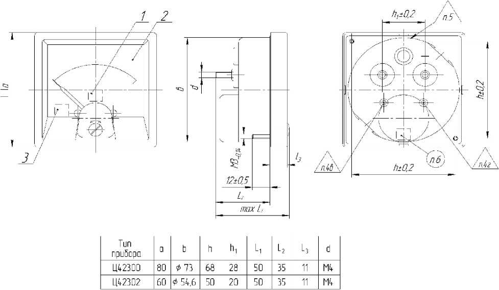Рисунок 3 - Общий вид, маркировка, клеймение микроамперметров, миллиамперметров и вольтметров Ц42300, Ц42302