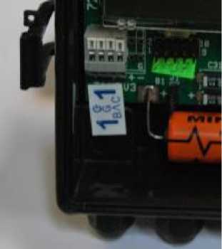 Счетчики "САЯНЫ-Т РМД" пломбируются разрушающейся наклейкой с оттиском клейма поверителя (Рисунок 3), предотвращающей доступ к разъемам, через которые проводятся программирование микропроцессоров и запись в память счетчика.