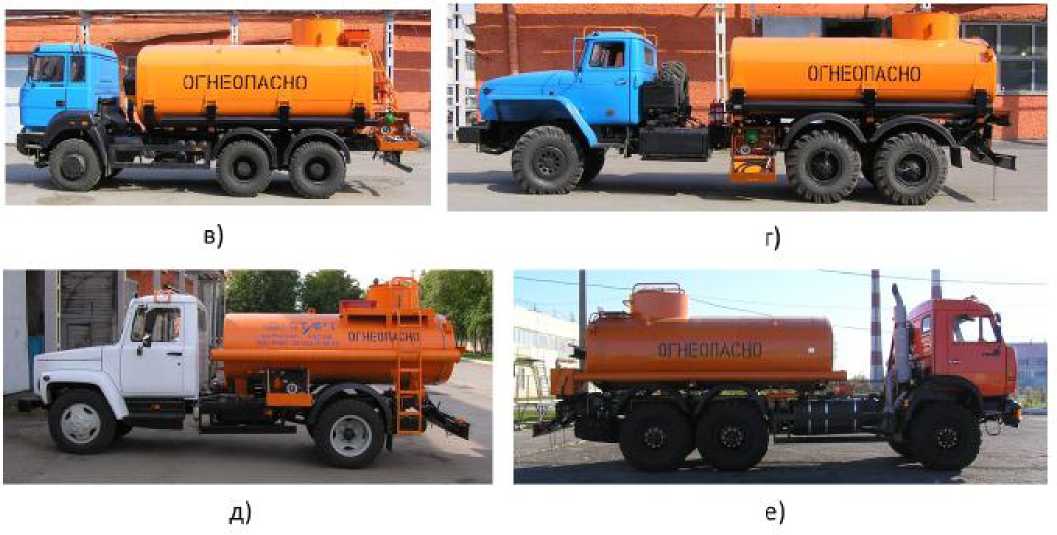 Рисунок 1. Общий вид автотопливозаправщиков 66131: а) 66131-0000010; б) 66131-0000010-02; в) 66131-0000010-04; г) 66131-0000010-10; д) 66131-0000010-06; е) 66131-0000010-08; ж) 661310000010-03; з) 66131-0000010-05