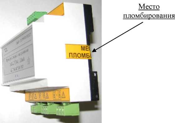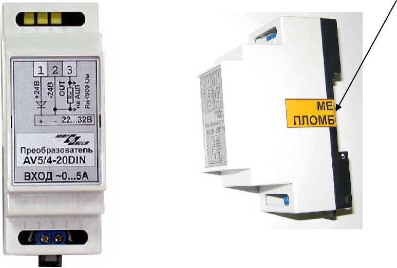 Общий вид и места пломбировки преобразователя измерительного переменного тока AV5/4-20DIN приведены на рисунке 1, а преобразователя измерительного напряжения переменного тока ПН3 - на рисунке 2.