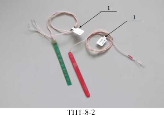 Термометры ТПТ-8 в исполнении ТПТ-8-2 выполнены в виде спирали из платиновой проволоки, намотанной на плоский стеклотекстолитовый каркас, либо из соединенных между собой сенсоров, которые являются ЧЭ термометров. Внешне ЧЭ изолирован и защищен оболочкой из фторопластовой термоусадочной трубки. Выводы выполнены из провода МГТФ.
