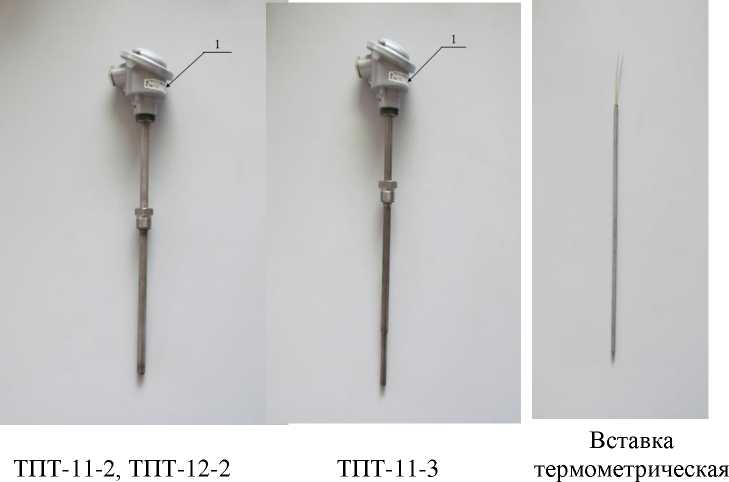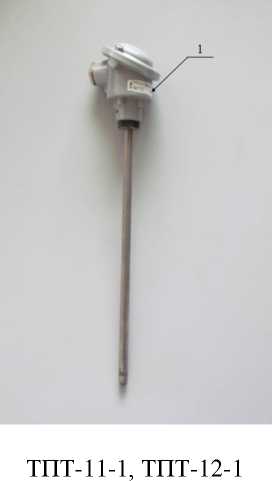 Рисунок 3 - Внешний вид термометров платиновых технических ТПТ-11 и ТПТ-12 (1 - место нанесения заводского номера)