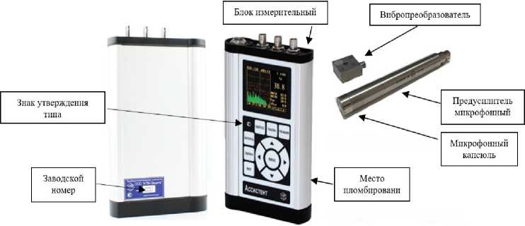 Конструктивно анализатор представляет собой малогабаритный прибор c автономным питанием от аккумуляторов и состоит из блока измерительного (БИ), предусилителя микрофонного (ПУ), микрофонов конденсаторных (МК) типа МК265, ВМК205 и МК233, вибропреобразователя (ВП) типа АР38, АР40. ПУ соединяется с БИ соединительным кабелем. ВП соединяется с БИ соединительным кабелем, в соответствие с маркировкой выходов осей ВП.