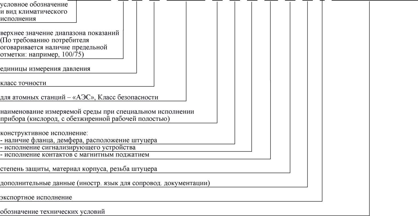 1 За базовое исполнение приняты следующие исполнения приборов: степень защиты - IP40; единица измерения кгс/см2; резьба присоединительного штуцера М20х1,5-8д; без фланца; радиальный штуцер; без демпфера; класс точности 1,5; для АЭС - класс безопасности 4.