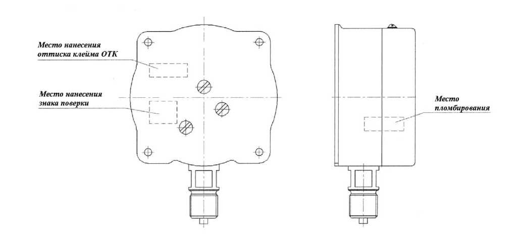 Схема пломбирования от несанкционированного доступа и обозначение мест для нанесения оттисков клейма ОТК и знака поверки приведена на рисунке 2.