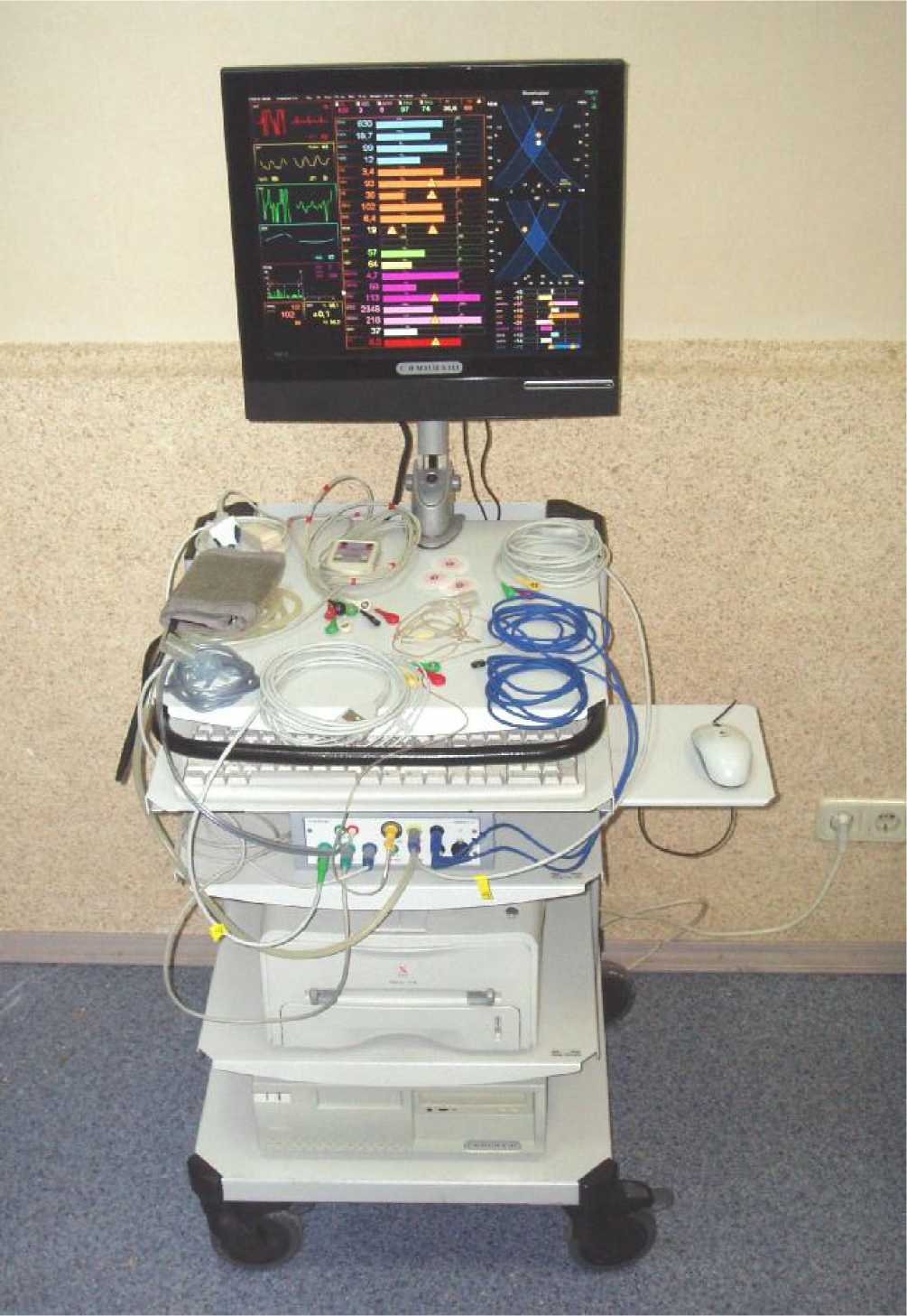 Система представляет собой аппаратно-программный комплекс, в состав которого входит персональный компьютер. Основной конструктивной частью системы является электронно-измерительный блок (далее - ЭИБ) с комплектом датчиков, электродов и принадлежностей.