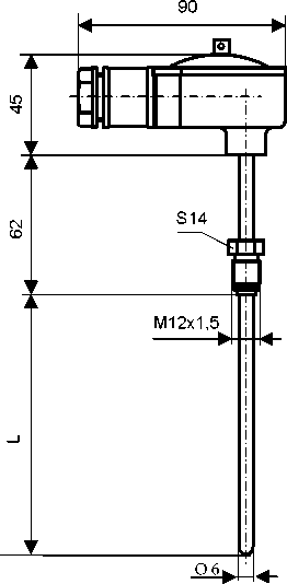 Принцип действия термометров основан на температурной зависимости сопротивления платинового пленочного резистора. Термометры состоят из термочувствительного элемента со стандартизованной зависимостью сопротивления от температуры, помещенного в тонкостенную металлическую трубку, соединенную с клеммной головкой из пластмассы.