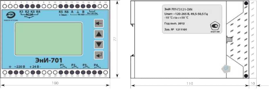 Корпус регистратора рассчитан для монтажа на DIN-рейку (исполнение DIN) или на щит (исполнение 01).