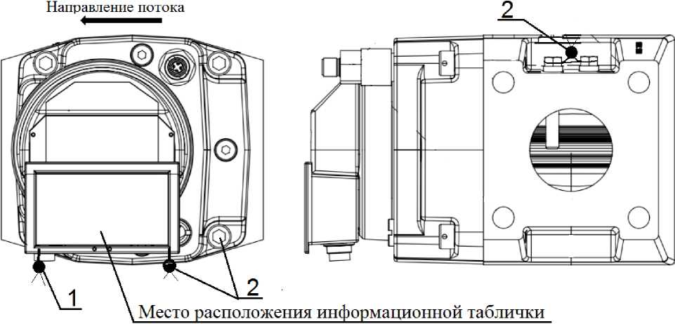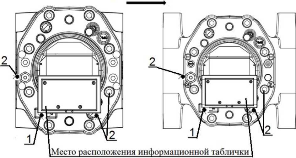 - места отбора давления, расположенные на корпусе счётчика, позволяющие проводить измерения давления на входе и выходе счетчика. Место отбора давления на входе служит для подключения преобразователя давления, входящего в состав корректора объема газа;