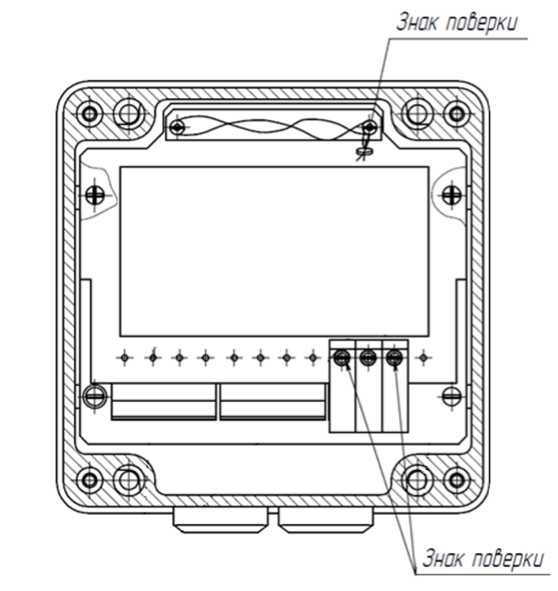Схема пломбировки от несанкционированного доступа, обозначение мест нанесения знака поверки, приведены на рисунке 3 и рисунке 4.
