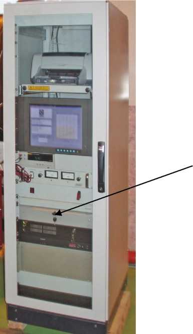 В шкафу так же установлен, подключенный к компьютеру аналогово-цифровой модуль ввода-вывода, предназначенный для сбора, обработки данных и управления процессом испытания кабеля. В высоковольтном блоке смонтирована измерительная часть стенда. Высоковольтный блок и модуль ввода-вывода соединены кабелем интерфейса.