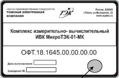 Знак поверки в виде оттиска клейма наносится на маркировочную табличку МикроТЭК (для МикроТЭК-01-МК и МикроТЭК-04) или на переднюю панель корпуса МикроТЭК (для МикроТЭК-09-ХХ-МК и МикроТЭК-11), а также в формуляр.