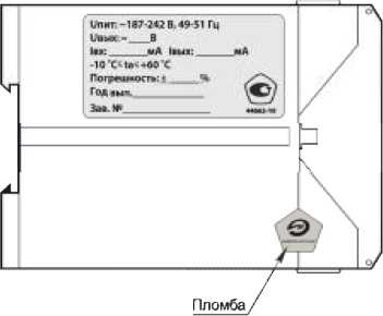 Защита блоков от несанкционированного вскрытия обеспечивается нанесением клейма (пломбы) на корпус. Пломба представляет собой саморазрушающуюся наклейку, которая наносится в месте соприкосновения основания и крышки корпуса. Схема пломбировки представлена на рисунке 2.