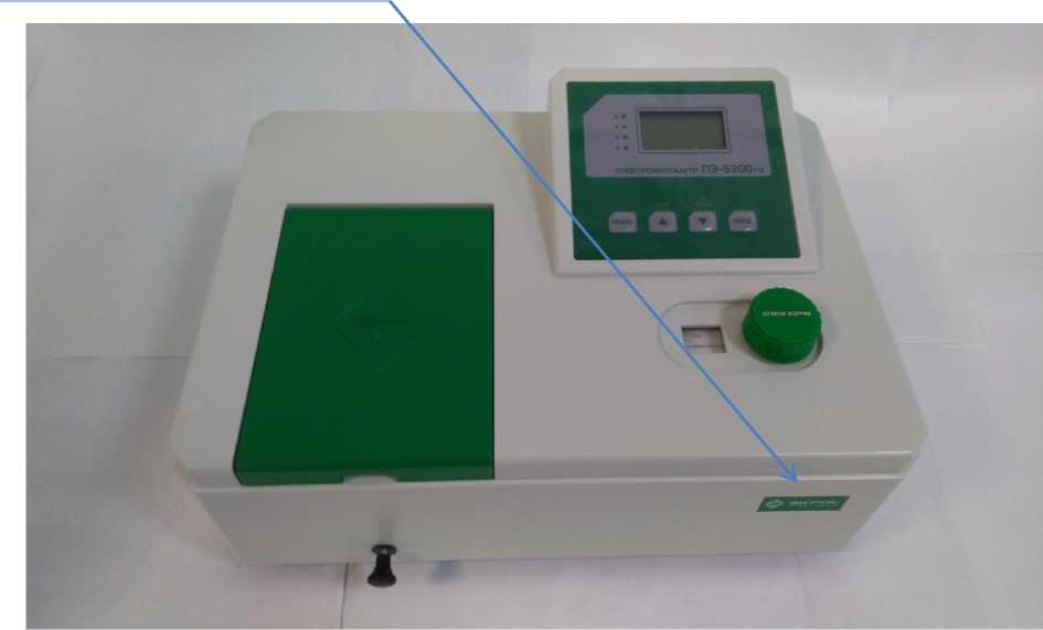 Для разложения излучения в спектр в приборах используется монохроматор с дифракционной решеткой. Оптическая схема - однолучевая. В качестве источников излучения используются галогенная лампа (для моделей ПЭ-5300ВИ, ПЭ-5400ВИ), галогенная и дейтериевая лампы (для моделей ПЭ-5300УФ, ПЭ-5400УФ), а в качестве приемника - кремниевый фотодиод. Модели ПЭ-5300ВИ и ПЭ-5300УФ управляются с помощью клавиатуры и барабана для смены длин волн. Модели ПЭ-5400ВИ и ПЭ-5400УФ управляются с помощью клавиатуры. Возможно подключение спектрофотометров по интерфейсу USB к персональному компьютеру для управления и отображения результатов с помощью программного обеспечения, устанавливаемого на ПК. Все модели оснащены ЖК-дисплеем, на который выводится результат измерения коэффициента пропускания (или оптической плотности), ряд служебных параметров и рабочая длина волны (модели ПЭ-5400ВИ и ПЭ-5400УФ). Спектрофотометры имеют кюветное отделение, рассчитанное на установку кювет с длиной оптического пути до 100 мм. Внешний вид спектрофотометров показан на рисунках 1 и 2. Пломбирование спектрофотометров не предусмотрено. Общий вид спектрофотометров и место нанесения знака поверки приведены на рисунках 1-4.