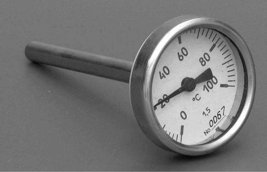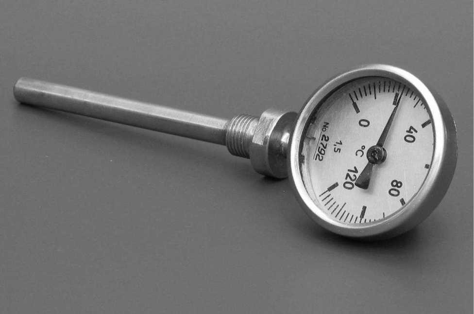 Принцип действия термометров основан на свойстве биметаллической пружины раскручиваться (скручиваться) при изменении температуры. При нагревании пружина биметаллическая (чувствительный элемент) раскручивается, что вызывает вращение оси и стрелки, закрепленной на свободном конце пружины относительно циферблата, От воздействия измеряемой среды биметаллическая пружина защищена термобаллоном.