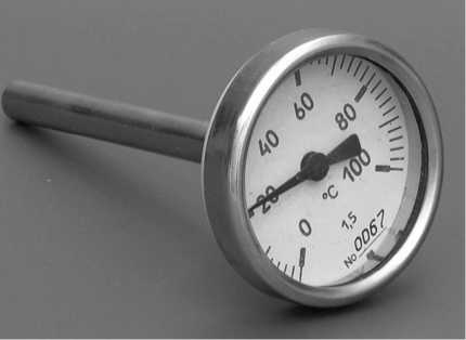 Принцип действия термометров основан на свойстве биметаллической пружины раскручиваться (скручиваться) при изменении температуры. При нагревании пружина биметаллическая (чувствительный элемент) раскручивается, что вызывает вращение оси и стрелки, закрепленной на свободном конце пружины относительно циферблата. От воздействия измеряемой среды биметаллическая пружина защищена термобаллоном.