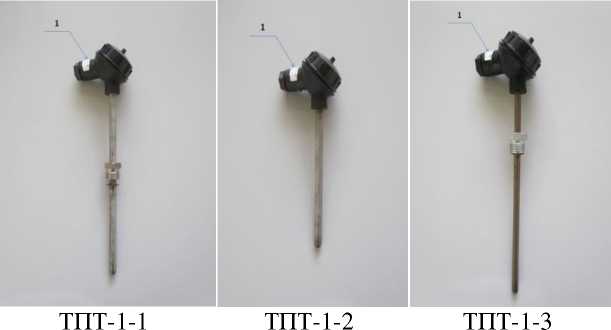 Виды исполнения отличаются друг от друга элементами подсоединения к измерительному устройству. Термометры в исполнении ТПТ-19-1 имеют контактную головку, термометры ТПТ-19-2 - разъем РС4ТВ с резьбовым соединением, а термометры ТПТ-19-3 присоединяются к внешней измерительной цепи посредством кабельного вывода (КММФЭ).