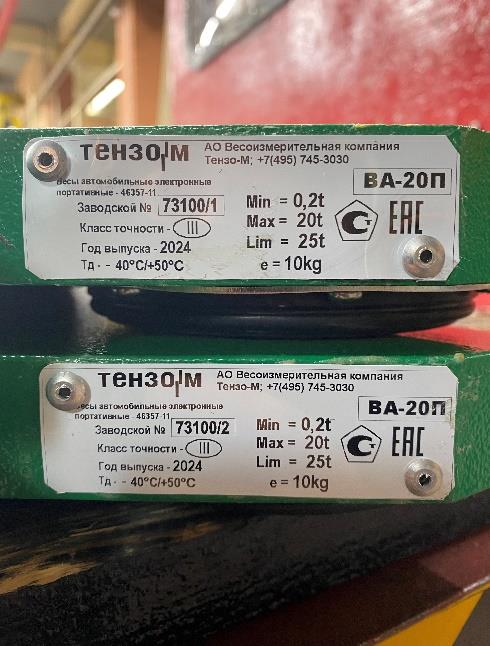 Маркировка весов выполнена на этикетках (рисунок 2), закрепленных на каждой грузоприемной платформе весов, которая содержит следующие сведения: