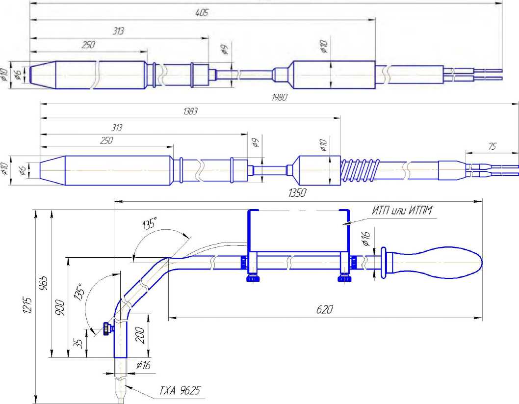 предназначены для измерений температуры головки прядильной машины и нагревательного утюга машины горячей вытяжки |