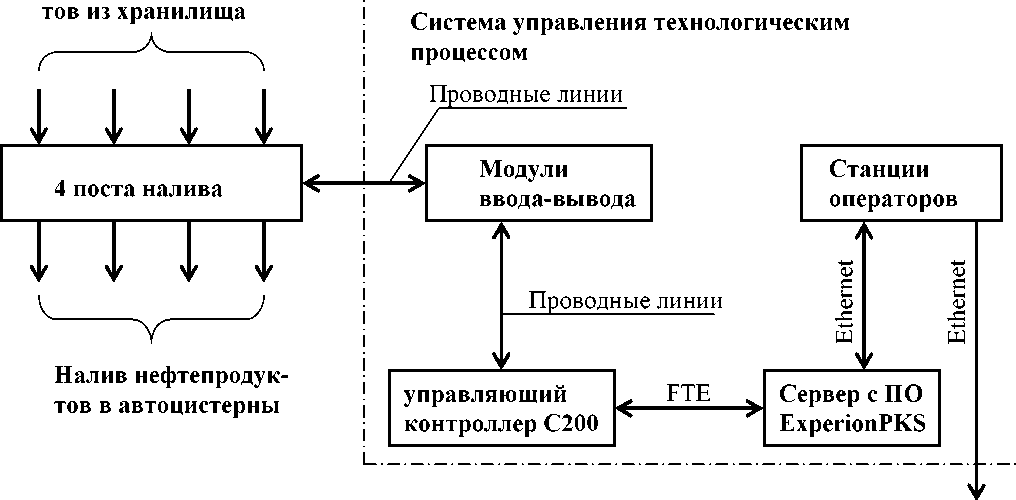 • Резервированный управляющий контроллер С200 и модули ввода/вывода аналоговых и дискретных сигналов измерительно-управляющей системы ExperionPKS (Г.р. №17339-06), с помощью которых осуществляется сбор контролируемых параметров и управление процессом отгрузки нефтепродуктов в автоцистерны;