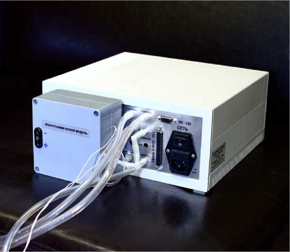 б) блок управления и пневматики с электрохимическим модулем, вид сзади
