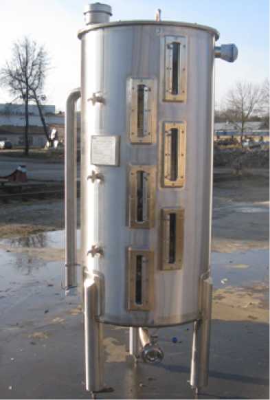 Корпуса мерников вертикальных - это вертикальные цилиндры с конусообразными днищами, в низших точках которых находятся выпускные патрубки с закрываемыми задвижками. В корпусе мерников вертикальных вмонтированы смотровые стекла со шкальными пластинами. Внутри нижних смотровых стекол вмонтированы держатели для термометров.