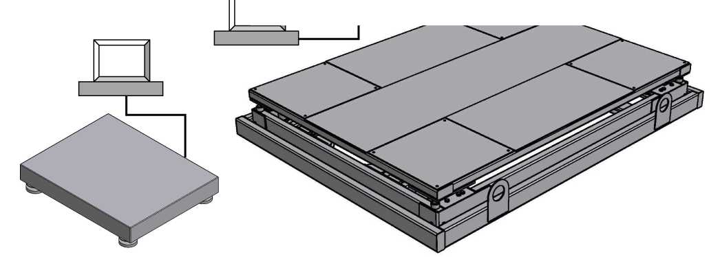 Компаратор КМП состоит из грузоприемного устройства (далее - ГПУ) со встроенными весоизмерительными тензорезисторными датчиками (далее - датчик), прибора весоизмерительного (далее - ПВ) и компьютерной станции (далее - КС) с установленным программным обеспечением (далее - ПО).