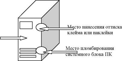 наносится на заднюю панель системного блока ПК путем наклеивания стикера и на титульный лист паспорта - типографским способом.