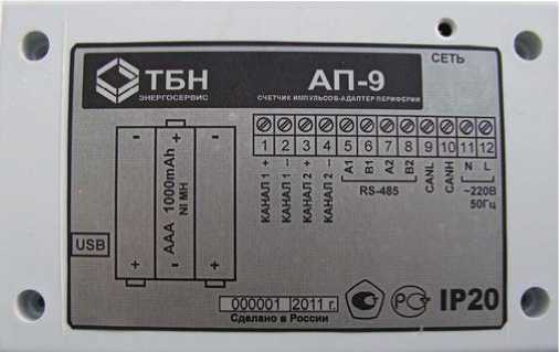 приведены в Руководстве по эксплуатации «Счетчики импульсов - адаптеры периферии с функциями сбора и передачи данных АП-9» РЭ 4237-026-42968951-2010.