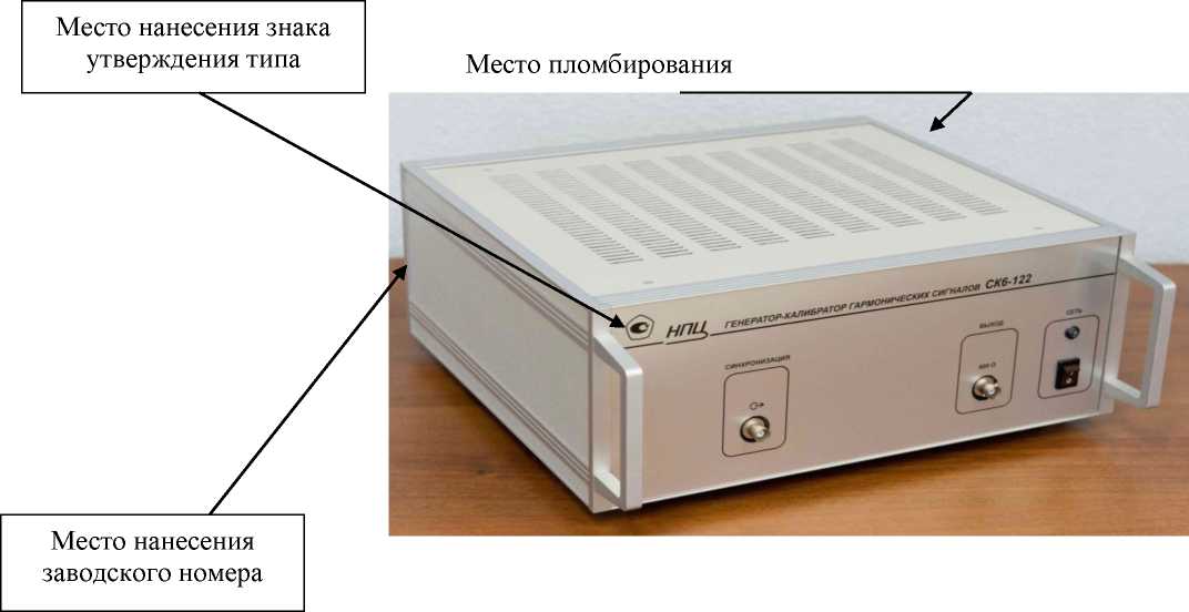 Общий вид генератора-калибратора гармонических сигналов СК6-122 с указанием места нанесения знака утверждения типа, заводского номера, а также места пломбировки представлены на рисунке 1.