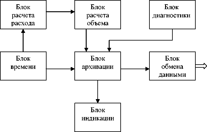 2) Блок расчета объема предназначен для расчетов его значений по результатам измерений расхода;