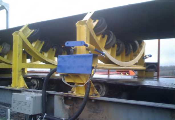 Весы (рисунок 1) состоят из грузоприемного устройства (далее ГПУ), установленного на ставе ленточного конвейера, роликоопор, количество которых может быть от одной до четырех, датчика скорости и контроллера весового. ГПУ состоит из двух узлов встроек с датчиками, находящимися на каждой стороне става конвейера. Датчик скорости устанавливается на ставе ленточного конвейера.