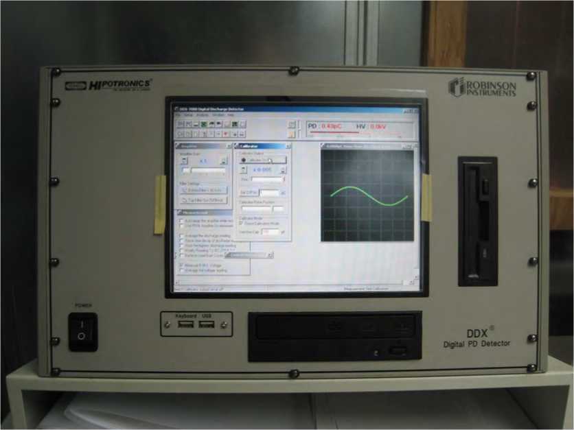 Входной сигнал усиливается, фильтруется в модуле усиления и передается в модули измерения и сбора данных. Модуль измерения измеряет величину частичных разрядов и приложенное напряжение. Плата сбора данных преобразует импульсы ЧР в цифровую форму для их графического представления и анализа. Модуль может функционировать в нескольких режимах, в зависимости от типа проводимых измерений. Результаты измерений отображаются на графическом цветном LCD-дисплее с разрешением 800 на 600 точек в буквенно-цифровом виде или (и) в виде осциллограммы. Для привязки результатов измерений ко времени их выполнения измеритель оснащен системными часами.