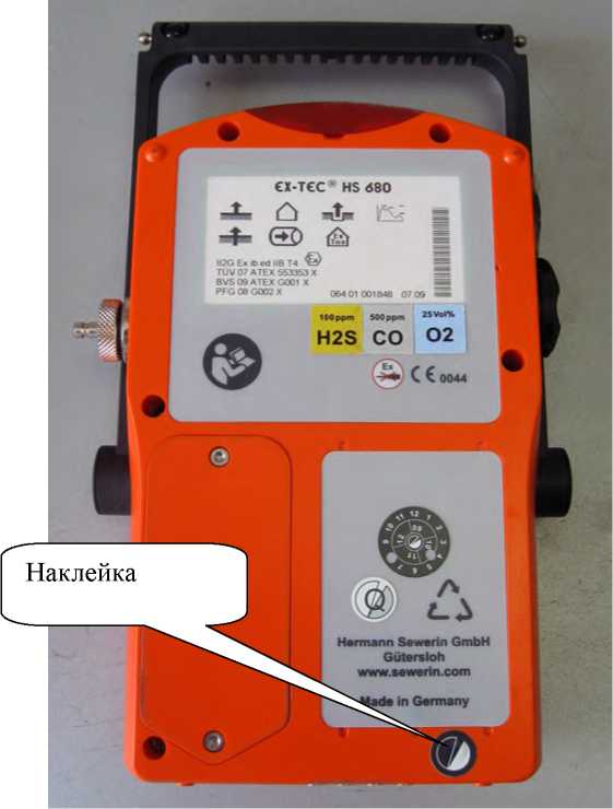 - в виде наклейки на табличку на задней панели газоанализатора.