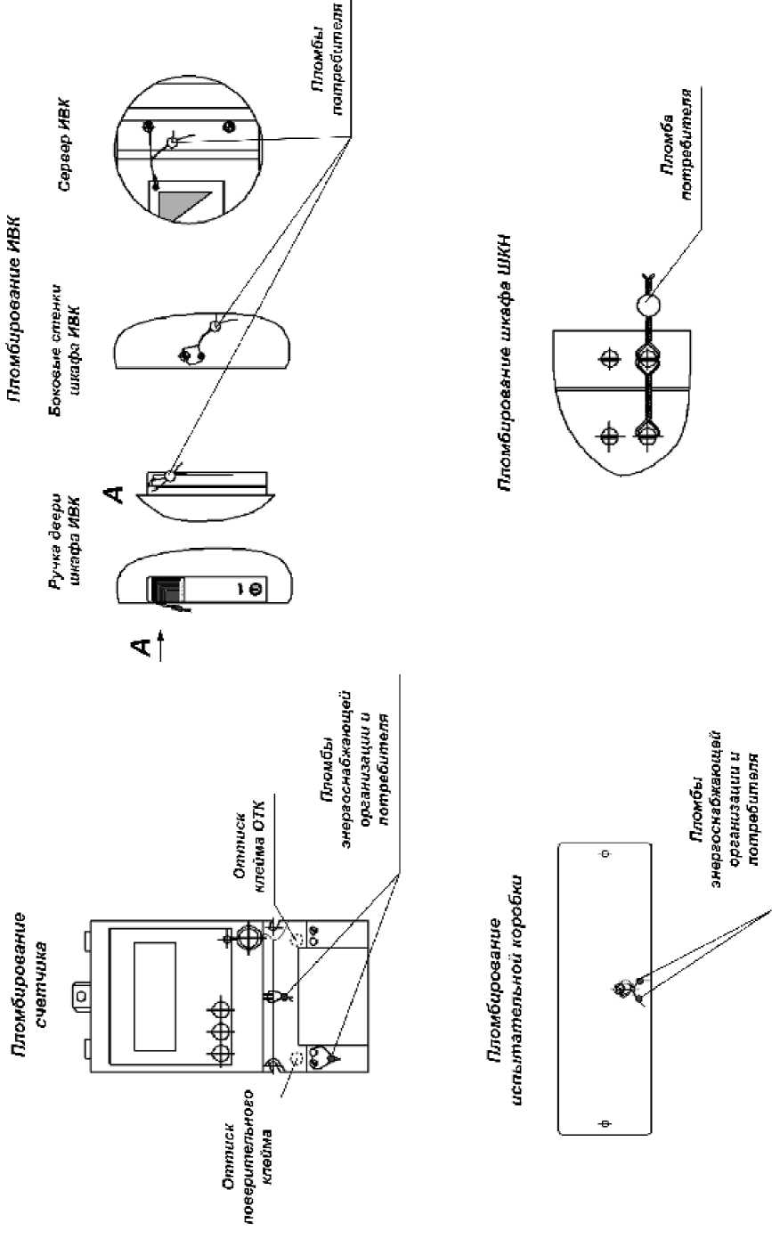 Места установки пломб и нанесения оттисков клейм от несанкционированного доступа на технические средства из состава АИИС КУЭ РНПК приведены на рис. 2.