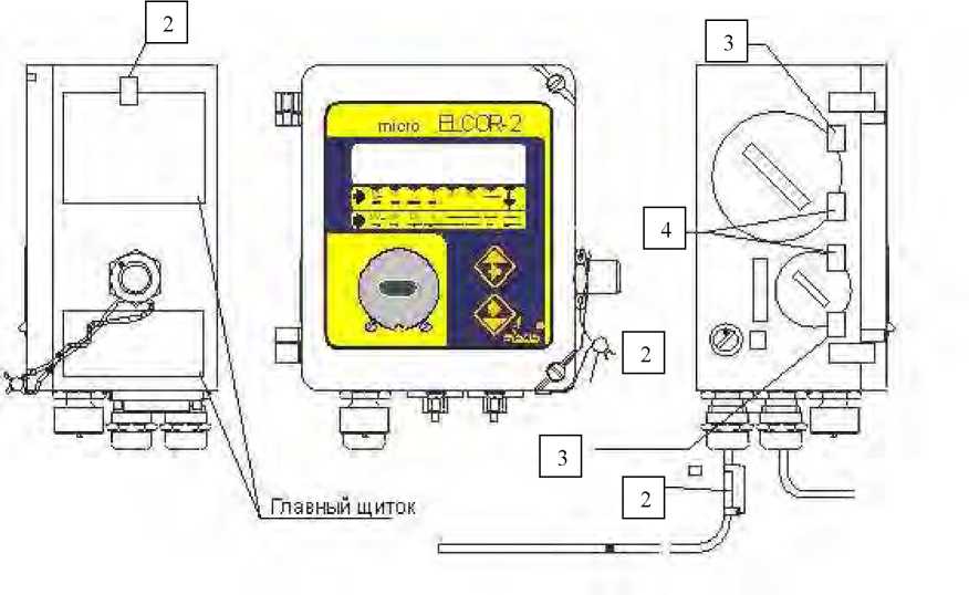 Рис. 2. Места нанесения поверительных наклеек и пломб для корректора ELCOR-2.