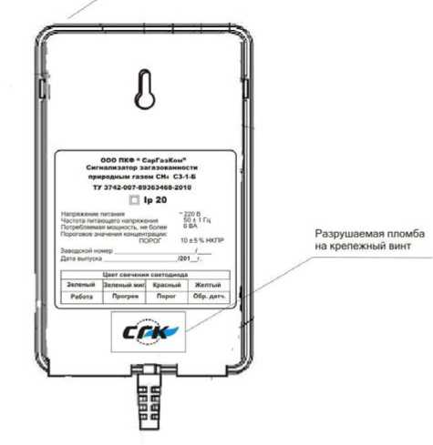 Конструктивно сигнализатор выполнен одноблочным, в пластмассовом корпусе. На передней крышке расположен светодиодный индикатор, вентиляционные отверстия, предназначенные для охлаждения сигнализатора и доступа окружающего воздуха (измеряемой среды) к датчику.