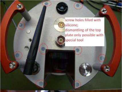 Схема пломбировки от несанкционированного доступа сканера приведена на рисунке 2. Примечание - кружками отмечены места пломбировки от несанкционированного доступа.