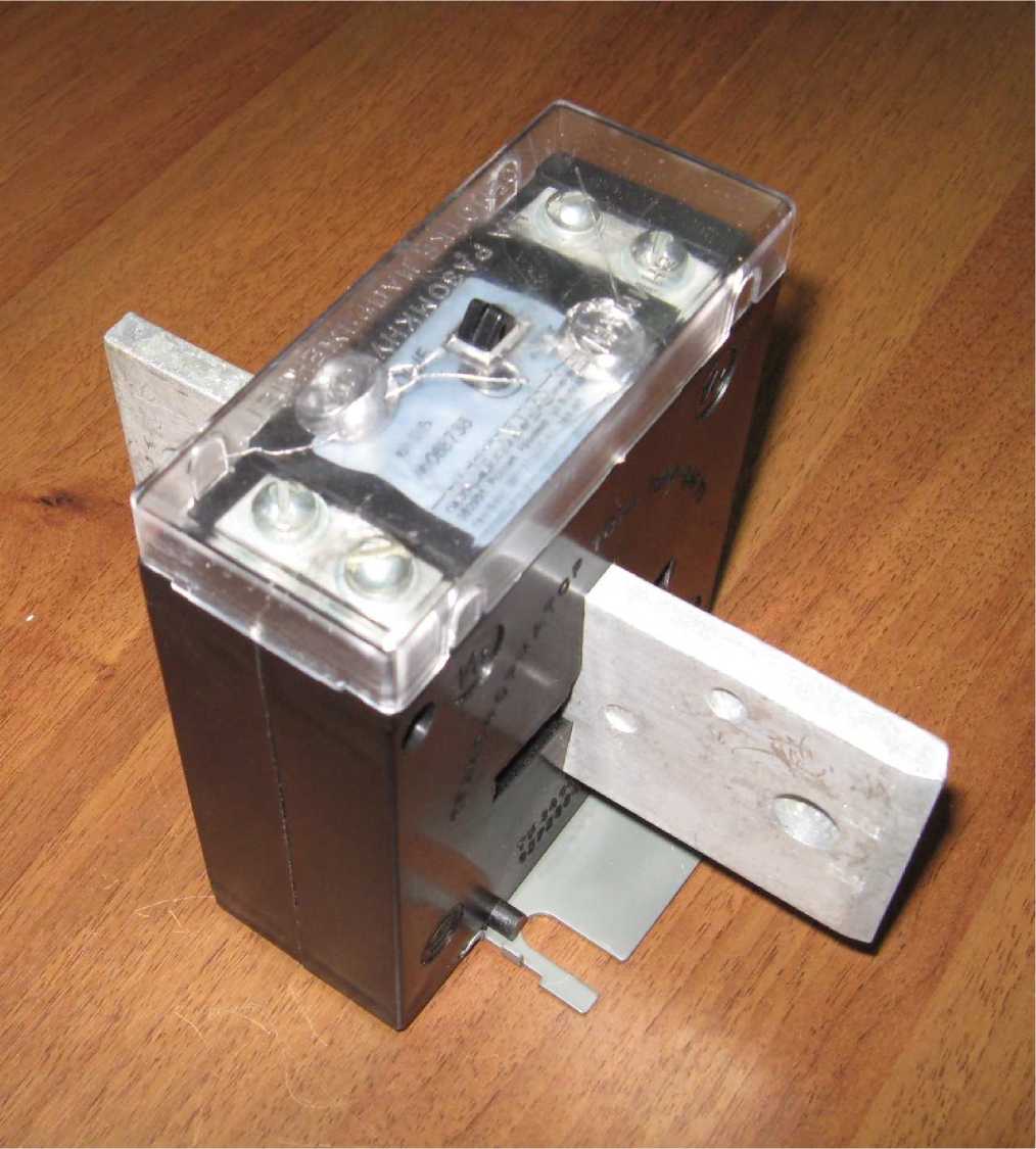 Принцип действия трансформаторов - электромагнитный. Трансформаторы состоят из магнитопровода, первичной и вторичной обмоток. Магнитопровод с навитой вторичной обмоткой размещен в пластмассовом корпусе. Первичная обмотка выполнена в виде съемной шины. Трансформаторы имеют 4 типоисполнения, отличающиеся номинальным первичным током. Конструкцией предусмотрено пломбирование места подключения измерительных клемм, исключающее возможность несанкционированного доступа (см. рисунки 1, 2).