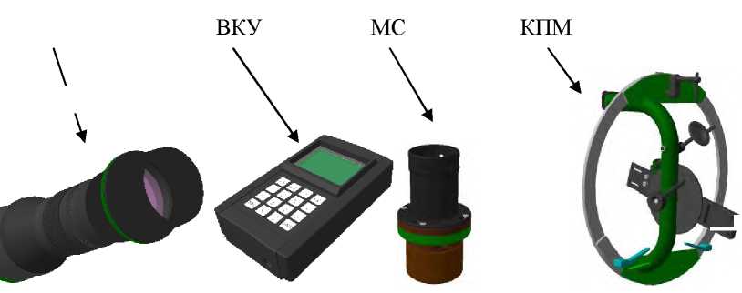 Принцип работы Устройства основан на преобразовании оптического изображения в электрический сигнал с помощью многоэлементного координатно-чувствительного фотоприёмника. Устройство конструктивно состоит из четырех основных блоков (рисунок 1, рисунок 2): видеоголовки (ВГ), видеоконтрольного устройства (ВКУ), модуля синхронизации (МС) и крепежно-подъёмного механизма (КПМ).