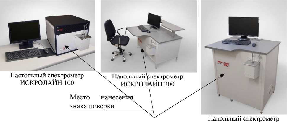 Знак поверки наносится на переднюю панель спектрометра, как показано на рисунке 1.