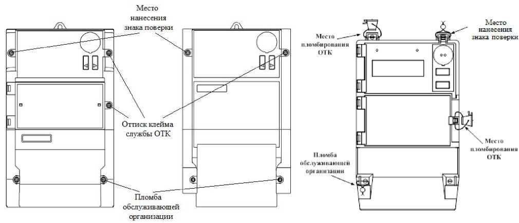 Знак поверки наносится давлением на специальную мастику или навесную пломбу, расположенную в месте крепления крышки корпуса к основанию счетчика.