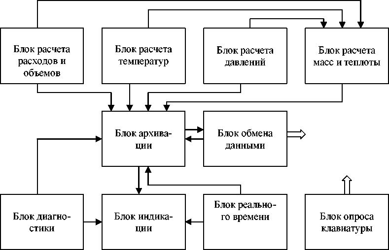 5) Блок архивации предназначен для расчетов и хранения средних и итоговых значений всех измеряемых величин;