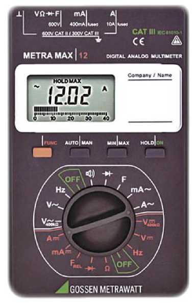 Мультиметр аналого-цифровой METRA MAX 12 (далее - мультиметр) предназначен для измерений напряжения и силы постоянного и переменного тока, электрического сопротивления, электрической емкости и частоты.