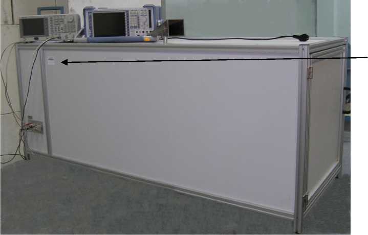 Конструктивно установка состоит из безэховой камеры, генератора сигналов сложной формы AFG 3022, антенны измерительной рупорной П6-69, анализатора спектра R&S FSP40.