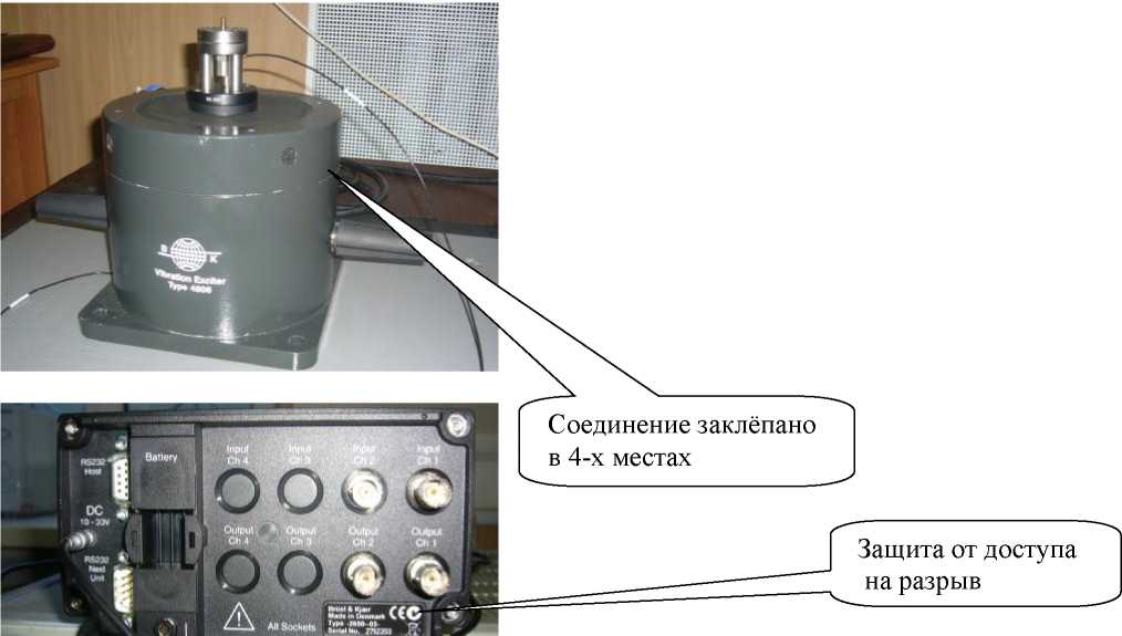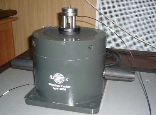 - вибростенда электродинамического модели 4808 (фирма "Брюль и Къер", Дания) с усилителем мощности модели 2719 (фирма "Брюль и Къер", Дания) и генератором модели Г3-117 (Россия);