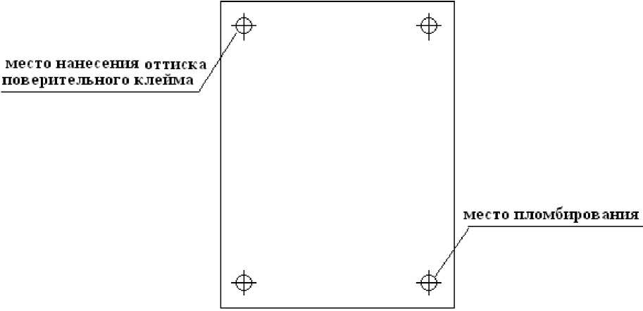 Конструктивно анализаторы выполнены в виде портативного прибора, через встроенный интерфейс, связанный с персональным компьютером, имеющим встроенное программное обеспечение. Питание анализаторов осуществляется от сети напряжением (220 ± 22) В, частотой 50 Гц. Корпус анализаторов выполнен из пластмассы. На нижней части корпуса предусмотрены места для пломбирования. Схема пломбировки анализаторов от несанкционированного доступа с указанием мест для пломбирования и нанесения оттиска поверительного клейма приведены на рисунке 2.