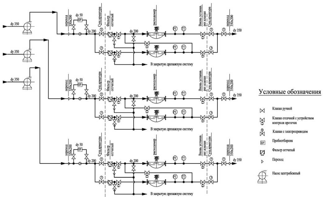 - запорная арматура с гарантированным перекрытием потока и контролем протечек на выходе каждой измерительной линии;