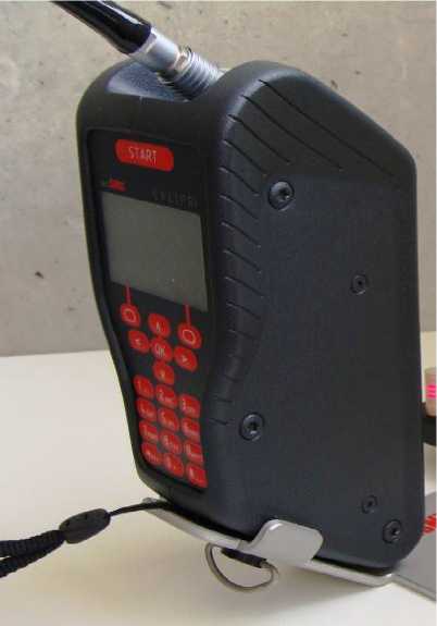 Для проведения измерений радиального/осевого биения датчик устанавливается на держатель для датчика перед колесом, которое нужно измерить, и клинообразным рычажком пристегивается с помощью магнита к колесу. Для получения согласованных параметров колесо должно вращаться с постоянной скоростью. Если требуются только максимальные значения радиального и осевого биения, то колесо вращается вручную. Изменение диаметра колеса определяется автоматически из сравнения полученных данных измерений на противоположных сторонах диаметра колеса.