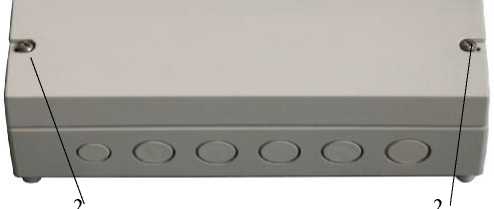 1 — заглушки мест крепления и пломбирования; 2 — винты крепления и места пломбирования отсека клеммных соединителей.